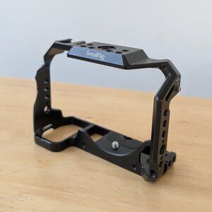 Classic Billingham Hadley Small camera bag in khaki canvas with leather trim. This bag is well worn and shows clear signs of use including scuffs, patina on the leather, and a small tear near the strap attachment (shown in photos). The tear has been present for years and has not grown or affected functionality. All closures, straps, padding, and internal dividers remain fully functional. Interior padding is intact and still provides good protection for a compact camera setup. A great option for someone who wants the legendary Billingham build quality without worrying about babying it.
