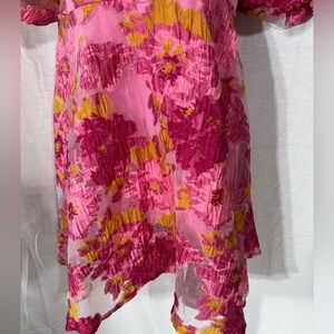 Petal & Pup Olivia Organza Pink and Yellow Floral Mini Dress