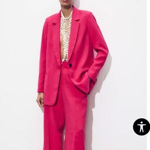 Zara Fuchsia Pink Crinkled Effect Blazer Size Small NWT
