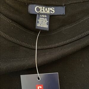 Elevate your wardrobe with this elegant black top from Chaps. Perfect for any occasion, this top offers both style and comfort. Boatneck NWT black top with cute and trendy braids on the sleeves! Size L! Pit to pit is approx 19 inches!