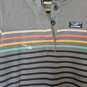 LL Bean Cotton Rugby Henley XS Grey Rainbow Stripe Granola Girl Outdoorsy Nature