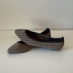 Elevate your style with these chic houndstooth flats. Perfect for any occasion, these shoes offer both comfort and elegance.