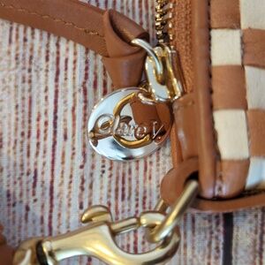 Clare V Petit Moyen Woven Checker Checkered Natural Tan & Cream Bag