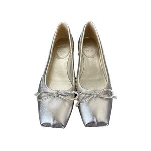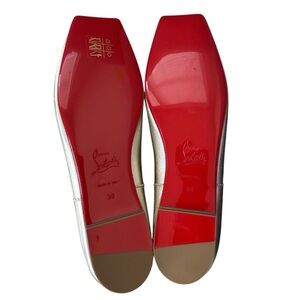 A classic silhouette in shimmering metallic leather is updated with a bold, squared-off toe and pinked trim for a ballet flat with a glam yet edgy attitude. A signature Louboutin-red sole adds a flash of brilliance to every step.
