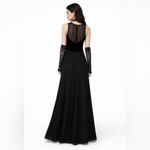 Black Velvet & Mesh Maxi Dress Sheer Back Sleeveless Minimalist Gown Unbranded M