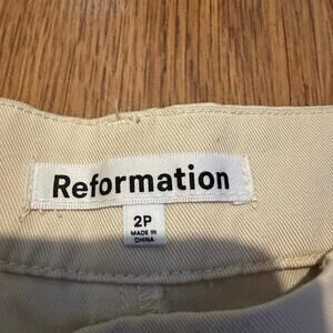 Reformation beige green pleated wide leg pants size 2 petite casual career