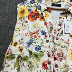 Tahari Floral Dress 18W Linen Blend Belted Fit Flare Midi Garden Cottage Plus