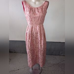 Vintage Bridesmaid/ Prom Dress Pink Brocade Sleeveless Zipper Maxi
