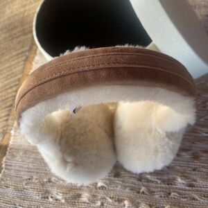 UGG Genuine Sheepskin Natural Tone Shearling & Suede Earmuffs in the lovely Chestnut Brown. One size. Comes in the origional box, with pricing still attached to the bottom of the box. This item is used, however as I recall I wore them once to a dinner party and they've been in the box since.