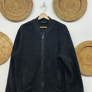 Express Black Knit Fleece Zip Up Lightweight Jacket Mens Large Neutral Layering