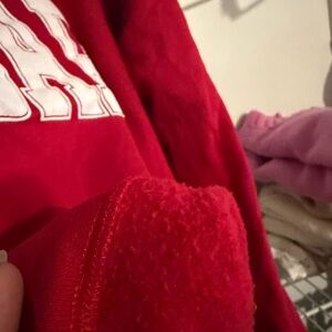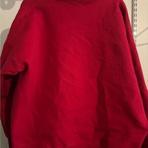 Vibrant red crewneck from The Bar. Simple and bold design.