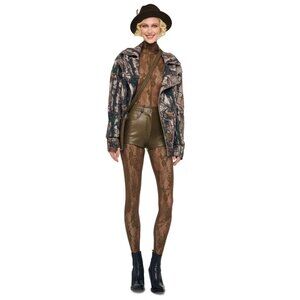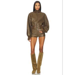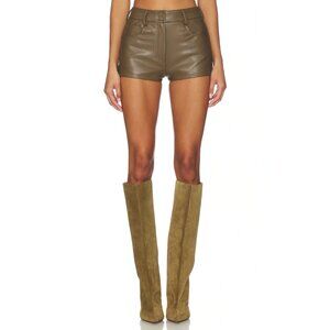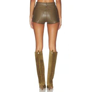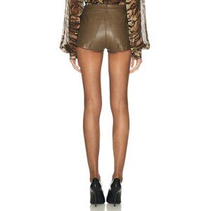 Norma Kamali High Waist Jean Short in Bark Small New Womens Vegan Faux Leather