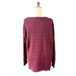 TALBOTS Burgundy Cable Knit Crewneck Sweater Cotton Shoulder Buttons Plus 3X EUC