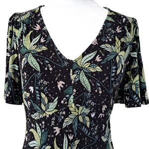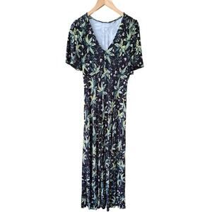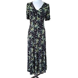 BODEN Jersey Midi Maxi Tea Dress Black & Green Oriental Cascade Floral Print 6