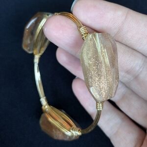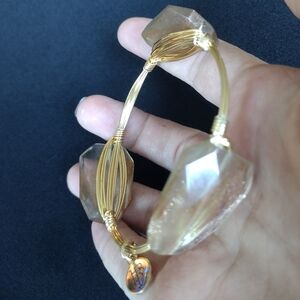 Bourbon and Bowties gold wire wrapped bracelet featuring unique sparkly stone accents. Perfect for adding a touch of sophistication to any outfit. All questions welcome!