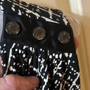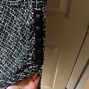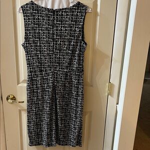 This elegant black and white dress features a stylish pattern, perfect for any occasion. Its classic design offers a sophisticated look.