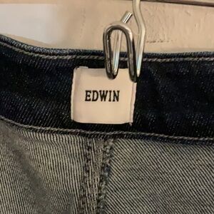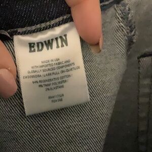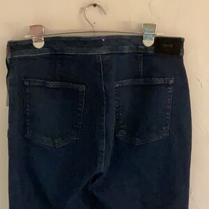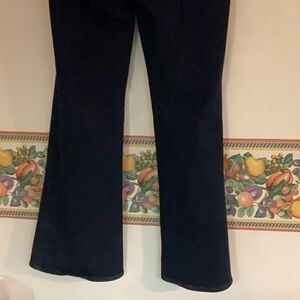 Chic Free People Edwin quietude indigo style jeans in midnight blue. Ideal for versatile styling. Features side zip, flat front, 2 back pockets and bootcut style. They are in a size 34 with measurements of about 16” in the waist lying flat and about 33” in the inseam. The fabric is 94% regenerative cotton, 4% T400 polyester and 2% elastane. NWT