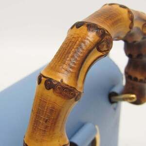 GUCCI Authentic Blue Leather Bamboo Shoulder Bag