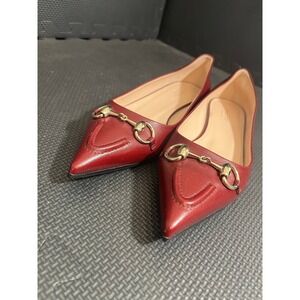Gucci Erin Leather Horsebit Ballerina Flats Red Burgundy Womens 38.5 US 8.5