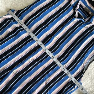 This stylish sleeveless men's shirt features bold stripes in blue, pink, and black. Perfect for a casual day out or a relaxed evening. Enjoy the comfort and modern look of this versatile piece.