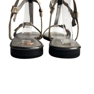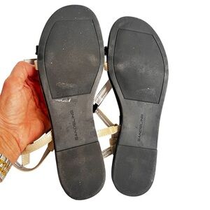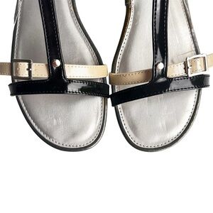 Bandolino sandal flat strappy black cream patent leather size 10