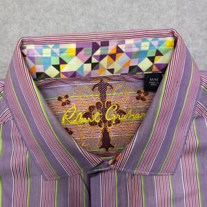 Robert Graham Shirt Medium Flip Cuff Bright Loud Striped Luxury Designer