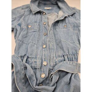 Belted Denim Romper silver buttons/snaps boho cottagecore beach wear nautical