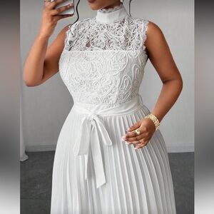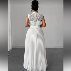 Step out in style with this elegant white lace evening gown. Perfect for any formal occasion, this dress features intricate lace detailing and a flattering silhouette. Make a statement with timeless black elegance. 95% polyester, 5% elastane.