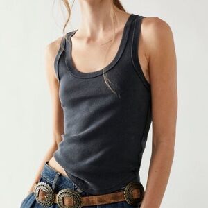 We The Free Women XL Washed Black Ribbed Jersey Grunge Kate Scoop Tank Top.