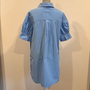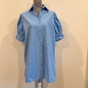 Button down shirt dress by COS. Oversized with gathered cuff/puff sleeves. Beautiful Sky Blue Color.