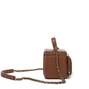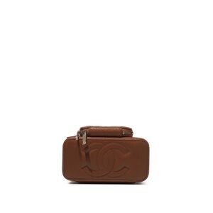 Chanel brown caviar mini vanity with cargo pocket.