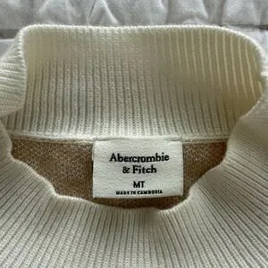 Abercrombie & Fitch Cream and Tan Long Sleeve Sweater Dress, Size MT