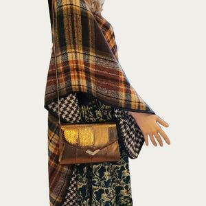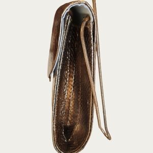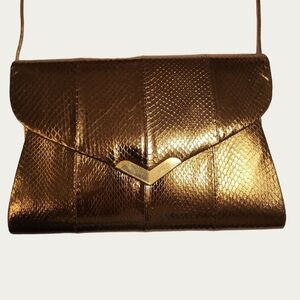 Vintage 1980's Bronze Gold Metallic Snakeskin Clutch/ Shoulder Bag EUC