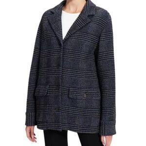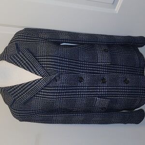 It was in very good condition. Measurements or in the pictures, the only size that can find on it says p and PT . I believe it is a size small. But please go by the measurements. it has four buttons down the front. Kind of a shirt jacket blazer combination. tweed career office, old money, quiet luxury.