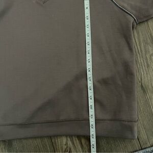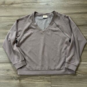 Elie Tahari Women’s V-Neck Sweater in Taupe with Sparkle Seam Accents. Super soft sweatshirt feel. Great as a warmer layer than a T-shirt but with all the same comfort. Excellent preowned condition. Womens size medium.