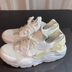 Nike Air Huarache Triple White Sneakers All White Low Top Running Shoes Size 9.5