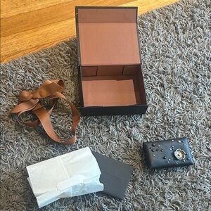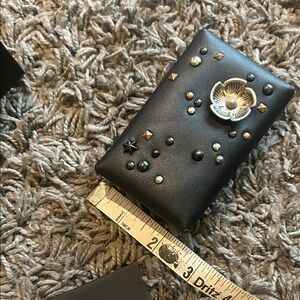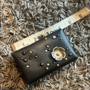 NWT Coach 1941 Turnlock Card Case Tea Rose Studs Black Glovetanned Leather