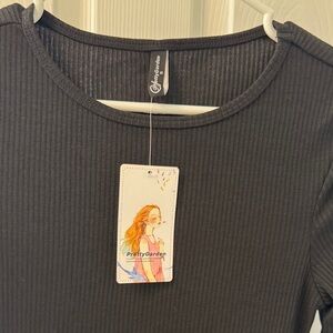 PrettyGarden Black Long Sleeve Ribbed Dress
