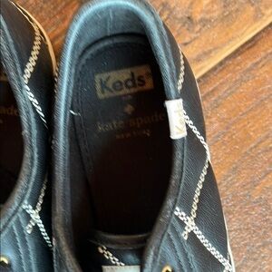 These Kate Spade athletic shoes showcase a sleek black design, perfect for both casual and active wear. Featuring a low-top style with traditional lacing, they offer a comfortable and secure fit. The classic design is enhanced by subtle white accents, making them a versatile addition to any wardrobe.