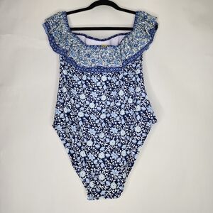 JESSICA SIMPSON Printed Off-The-Shoulder One Piece Swimsuit New with Tag.
