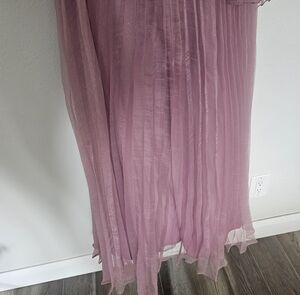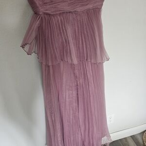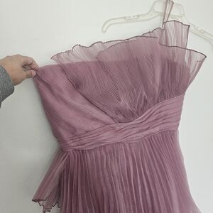 Chic one shoulder design. Soft pink hue, dusk. Perfect for elegant events.