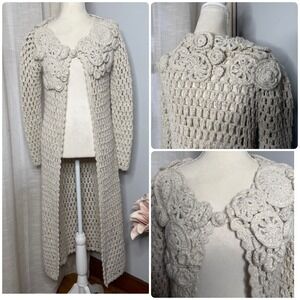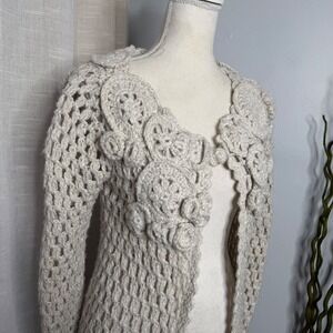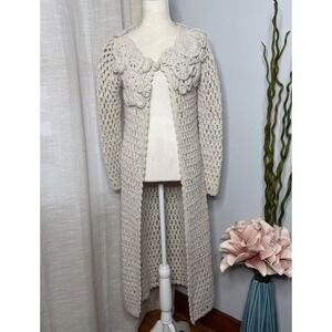 Anthropologie Far Away From Close Cardigan Sweater Duster Floral Doily Cream XS