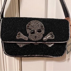 NWT Hand-Beaded Skull & Bones Purse Bag by From India To You, Black/Silver
