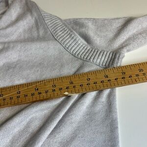 Bundle up and stay cozy with this soft, mid-weight waterfall cardigan made in a rayon/bamboo/tencel/acrylic/nylon/cashmere blend. Loose rippling layers of fabric wrap you up, while the length is more than enough to cover your bum- perfect for wearing over leggings and dressing up or down. Thumb holes and ribbed details complete the look. No size tag best guess is 8. Please see measurements in photos. Some wear on back of collar as shown in photo.