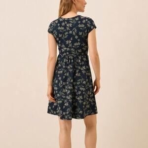 Pact Organic Fit & Flare Crossover Dress Painted Petals Midnight Blue