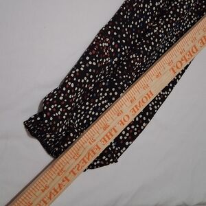 New in package eloges size M black crew neck puffed long sleeve gathered cuffs mini skirt or long top. The sleeves have white, purple and gray polka dots on them. Top was removed from manufacturers package only to get measurements. Machine wash with cold water gentle cycle. No bleach. Hang or line dry. Made in USA.