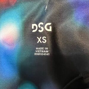 These DSG leggings feature a striking blue and pink pattern, perfect for adding a pop of color to your workout or casual attire. Made from a stretchy performance material, they offer a comfortable and form-fitting design that extends to the ankle. Ideal for both exercise and everyday wear, these leggings combine style and functionality effortlessly.