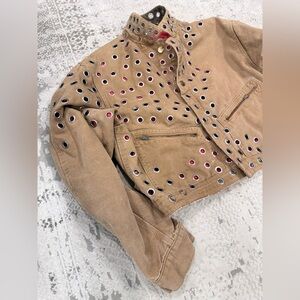 Vintage Carhartt Tan Cropped Jacket with Brown Collar made from a jumpsuit.