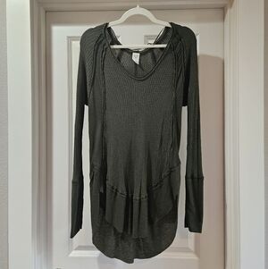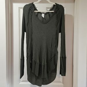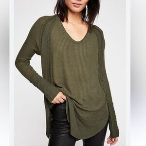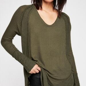 Free People Catalina Thermal Tee Long Sleeves Oversized Slouchy Olive Small EUC