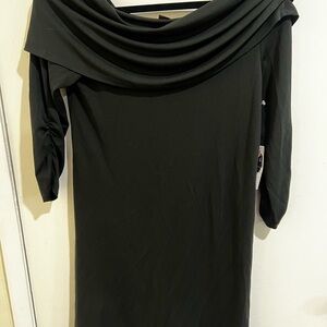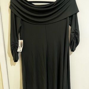Stylish off-shoulder dress with long sleeves. Ideal for formal events.